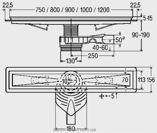 пропускная способность по DIN EN 274, от 0,8 л/сек. до 1,0 л/сек,