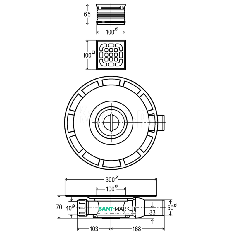 Сливной трап душа Viega Advantix боковой выпуск 100x100 571665