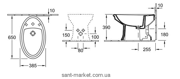 Биде напольное Villeroy&Boch коллекция Amadea 65х39х39 с переливом 748500R1