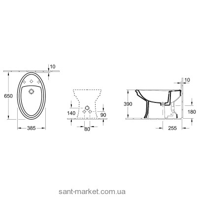 Биде напольное Villeroy&Boch коллекция Amadea 65х39х39 с переливом 748500R3