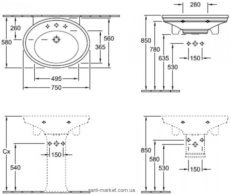 Умывальник подвесной Villeroy & Boch Amadea 718575R1. С переливом, включая хромированную крышку перелива. Отверстие для одно-позиционного смесителя и три отверстия для трех-позиционного смесителя. Покрытие Ceramic Plus - особо гладкая поверхность, на которой не остаются загрязнения и пыль. Цвет - белый альпин. Дополнительно вы можете приобрести пьедестал или полупьедестал.