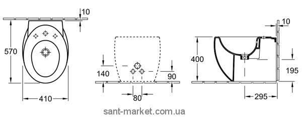 Биде напольное Villeroy&Boch коллекция Aveo 57х41х40 с переливом 742100R1