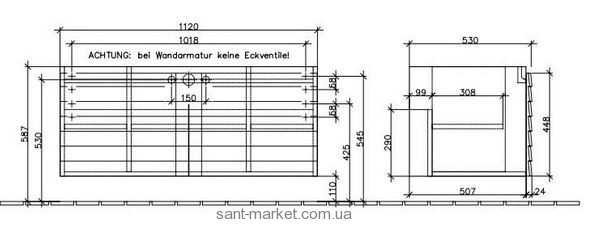 Тумба под раковину Villeroy&Boch Aveo подвесная 112х56х51.5 орех 985400BI