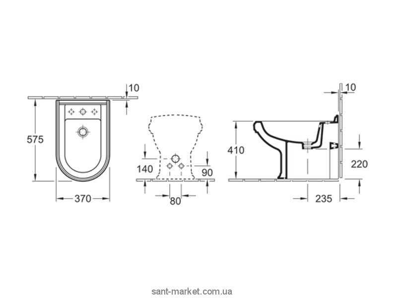 Биде напольное Villeroy&Boch коллекция Hommage 58х37х41 с переливом 744200R1