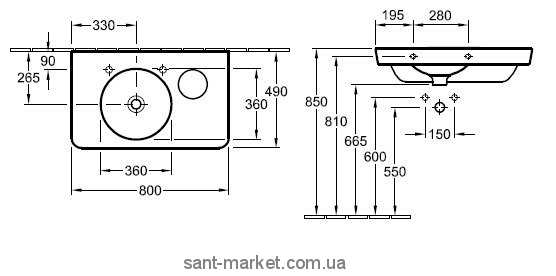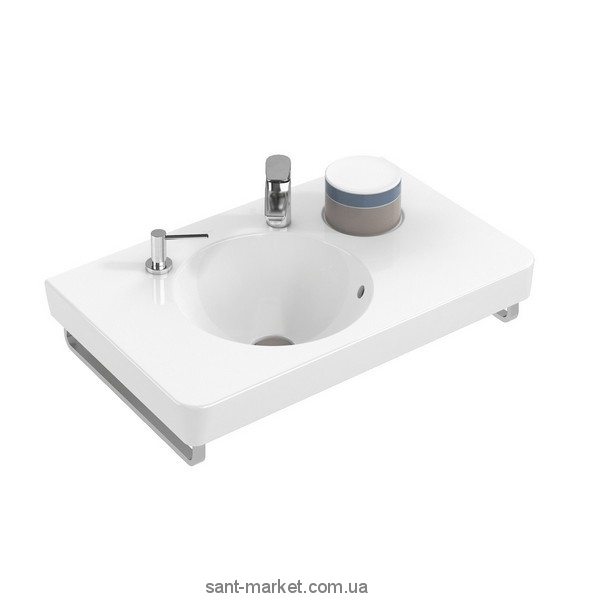 Villeroy Boch Joyce 41078001 - раковина с поверхностью для аксессуаров; санфарфор; размер: 80x49 см. Прямоугольная модель для 1- позиционного смесителя, отверстие для смесителя выбито слева, правое отверстие для смесителя подготовлено к выбиванию; с переливом. Возможно второе отверстие для дозатора жидкого мыла. Запираться может в сочетании со стандартным эксцентриковым сливным клапаном. Вешалка для полотенца: монтаж спереди (9295 54) / монтаж сбоку (9296 45) (возможность монтажа 2 шт.) - приобретаются отдельно.
