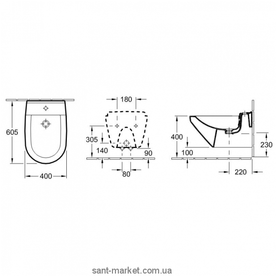 Биде подвесное Villeroy&Boch коллекция Lifetime 61х40х40 с переливом 54750001