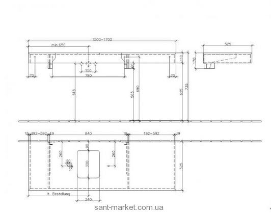 Столешница под раковину Villeroy&Boch Memento обрезается по размеру от 1500 до 1700 мм.