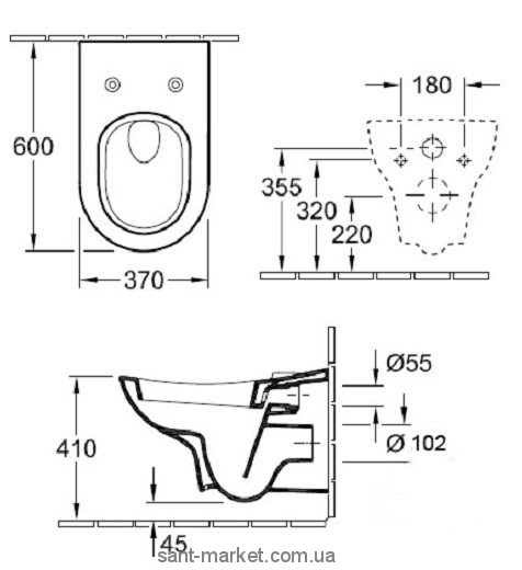 Биде подвесное Villeroy&Boch коллекция My Nature 60х37х41 с переливом 541000R1