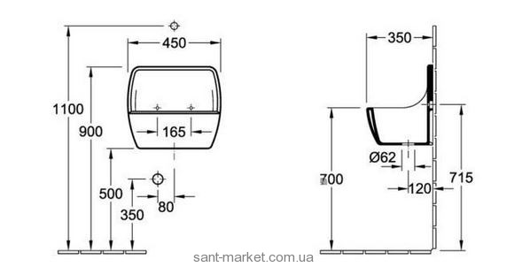 Раковина для ванной подвесная хозяйственная Villeroy&Boch коллекция O.Novo белая 69120101