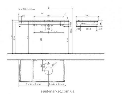 Villeroy&Boch Shape Столешница под раковину 850/1049 x 140 x 500 C536EH00