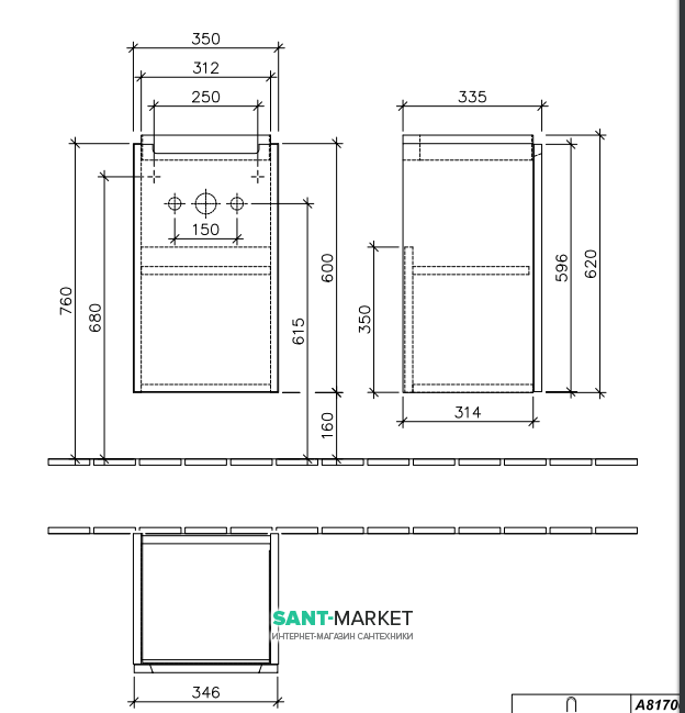 Тумба под раковину Villeroy&Boch Subway 2.0 подвесная 35x33.5x62 белая A81700DH