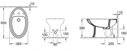 Биде напольное Villeroy&Boch коллекция Amadea 65х39х39 с переливом 748500R2