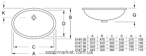 Врезная под столешницу раковина Villeroy & Boch Evana 614700R1 входит в коллекцию известного бренда Villeroy & Boch Evana. Данный умывальник имеет овальную форму с размерами 570 x 40,5 мм. Без предусмотренного отверстия для смесителя, есть отверстие под перелив. Материал изделия: санфарфор. В комплект поставки входит крепежный комплект. Вес: 10,75 кг. Цвет: "альпийский белый ceramicplus". Наружная сторона покрыта глазурью. Вырез столешницы под раковину можно выполнять только с оригинальной раковиной, так как допустимо отклонение в размерах на несколько мм.