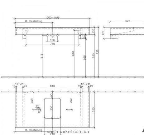 Столешница под раковину Villeroy&Boch Memento обрезается по размеру от 1200 до 1499 мм.