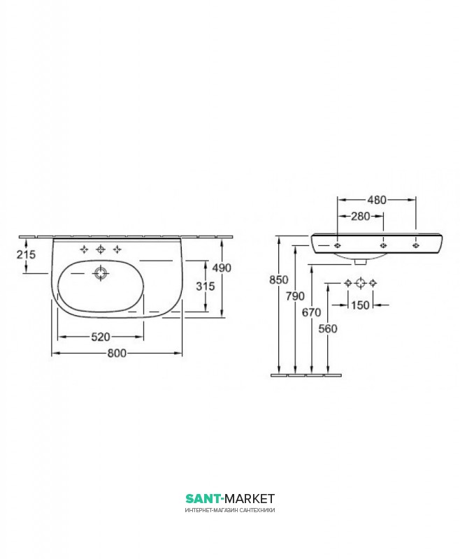 Раковина имеет отверстие под смеситель и перелив. Также подготовлены насечки для еще двух отверстий, если вы выбрали смеситель на три отверстия. Крепление осуществляется 2-я болтами M12x120 мм.Villeroy & Boch O.novo 51608001 относится к вполне доступной и достаточно популярной коллекции Villeroy & Boch O.novo. Это бюджетная серия немецкой керамики высокого качества доступная каждому.