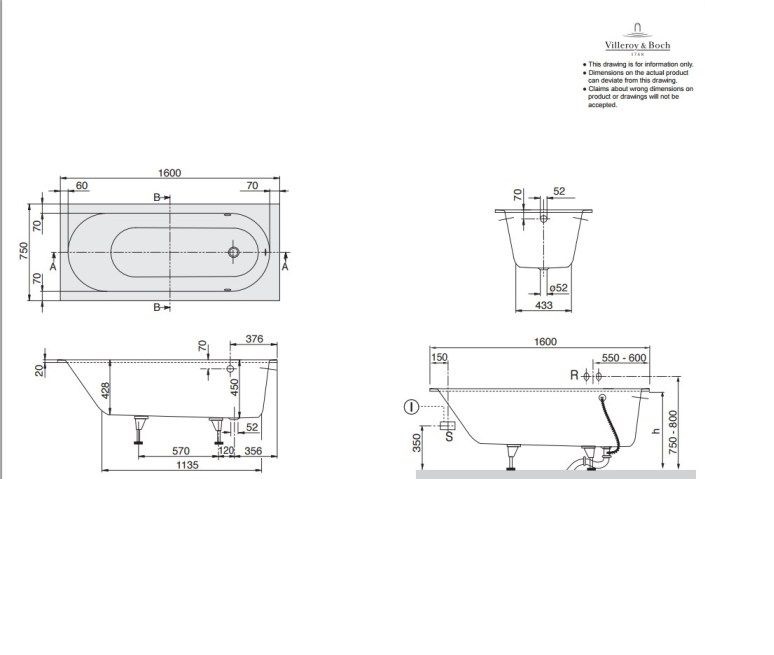 Спешите купить Villeroy&Boch Ванна 160х75 Oberon UBQ160OBE2V-01 по акционной цене.