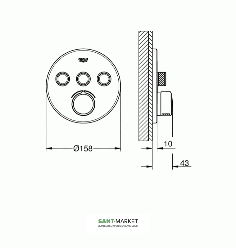 - внешняя панель смесителя GROHE Grohtherm SmartControl