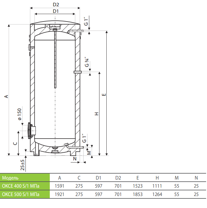 Энергоэффективность класса «B» - модели OKCE 300, 400 S/10 Бар, энергоэффективность класса «A» - модели OKCE 500-2000 S/10 Бар.