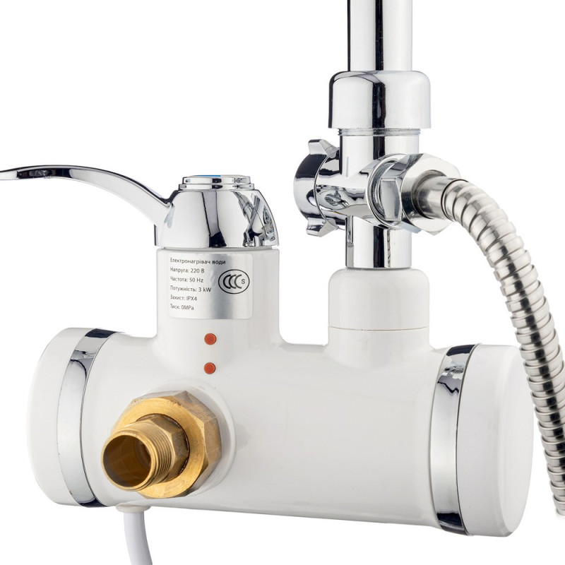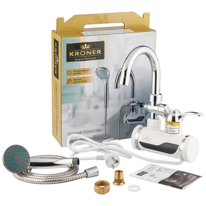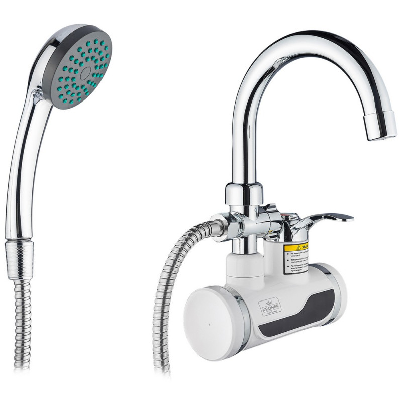Водонагреватель проточный Kroner KRM Volt-CW191WMDS с краном и душевм гарнитуром хром/белый CV023249