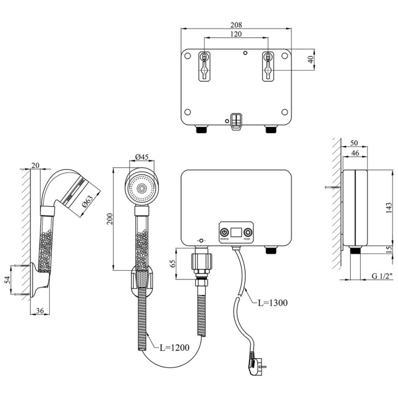 Водонагреватель проточный Kroner KRM Volt-CW200WMDS с дисплеем CV031873