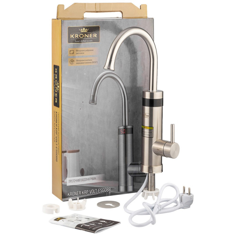 Водонагреватель проточный Kroner KRP Volt-ESG088 с краном никель