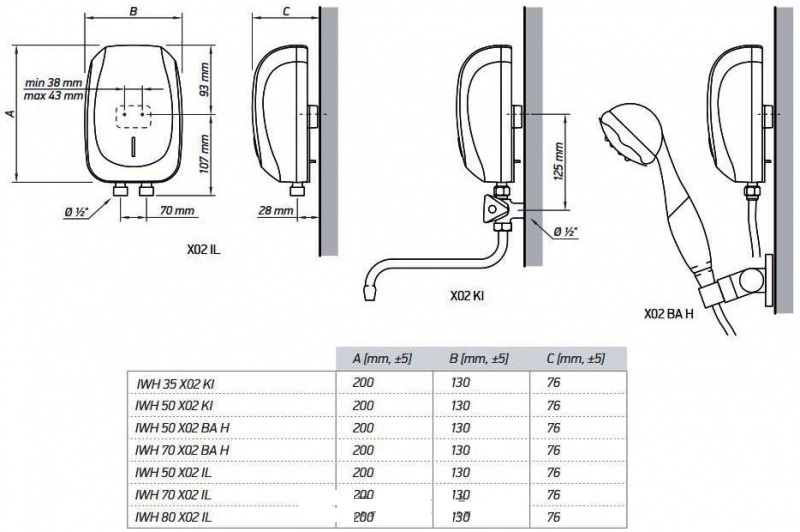 Водонагреватель проточный Tesy 5 кВт с душевой головкой IWH 50 X02 BA H