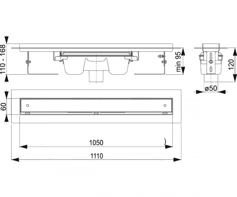 Водосточный желоб AlcaPlast APZ1007 Floor 1050 мм с решеткой, предназначенной для кладки плитки