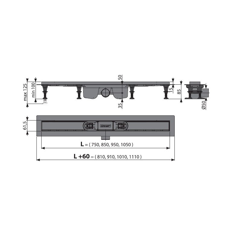 Водосточный желоб AlcaPlast APZ12 Optimal 850 мм полипропилен