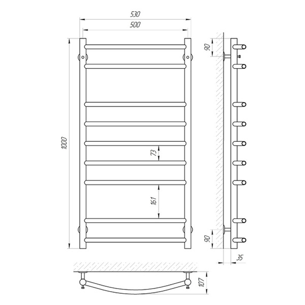 Водяной полотенцесушитель Laris Флеш П9 500х1000 мм хром 74100011