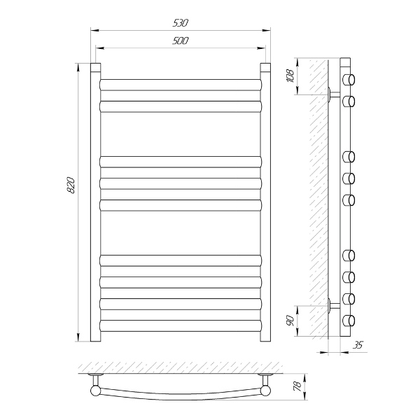 Водяной полотенцесушитель Laris Классик Премиум П9 500x800 мм