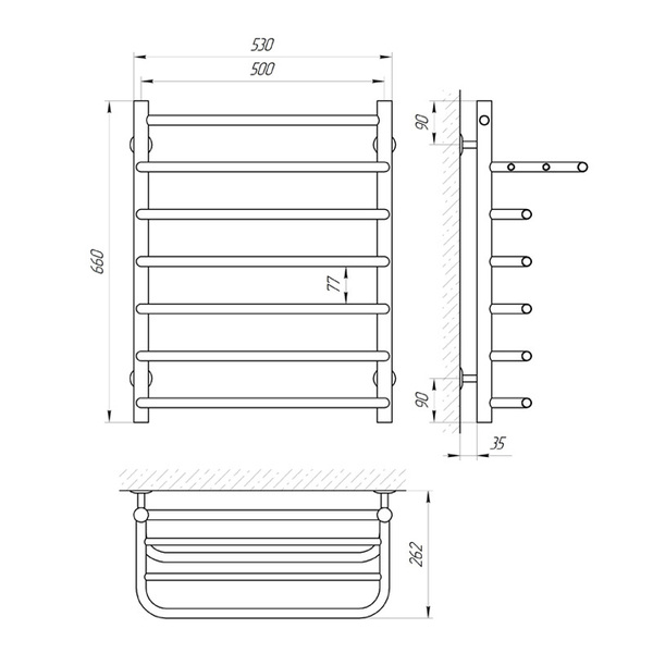 Водяной полотенцесушитель Laris Стандарт П7 500x660 мм с полкой