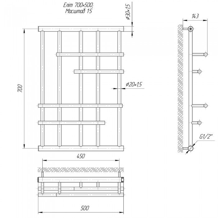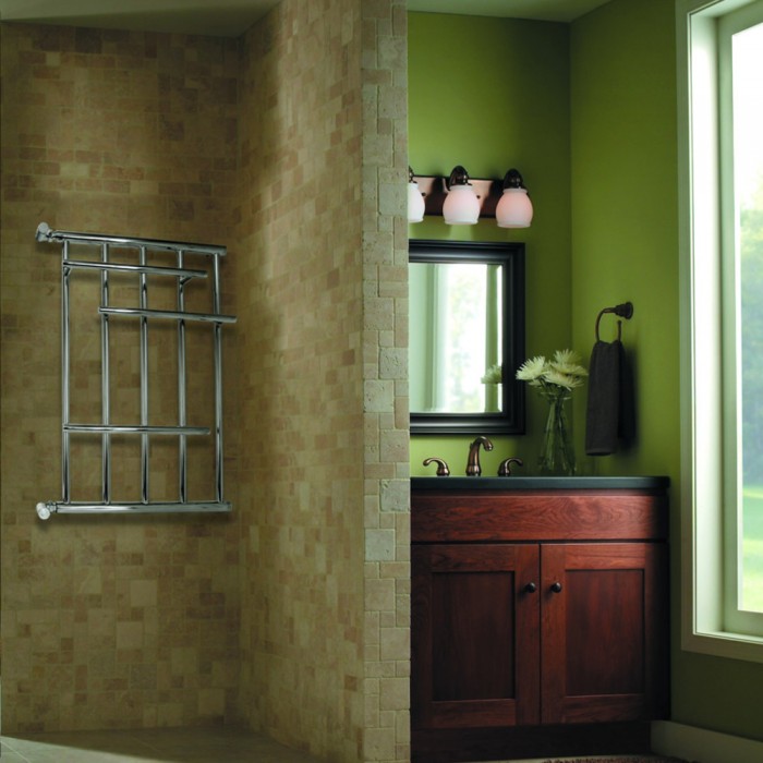 Полотенцесушитель из коллекции Элит выполнен в уникальном дизайне. Его конструкция состоит из 5 стоек и 4 полотенцедержателей. Такая форма поможет быстро высушить габаритное белье и станет настоящим украшением любой ванной комнаты. Подключение горячего водоснабжения к изделию осуществляется сбоку.