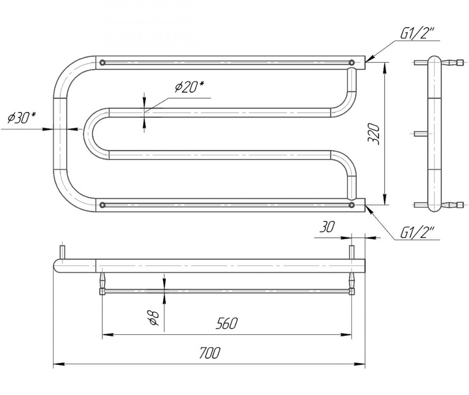 Водяной полотенцесушитель Mario Фокстрот 350x700/320 мм