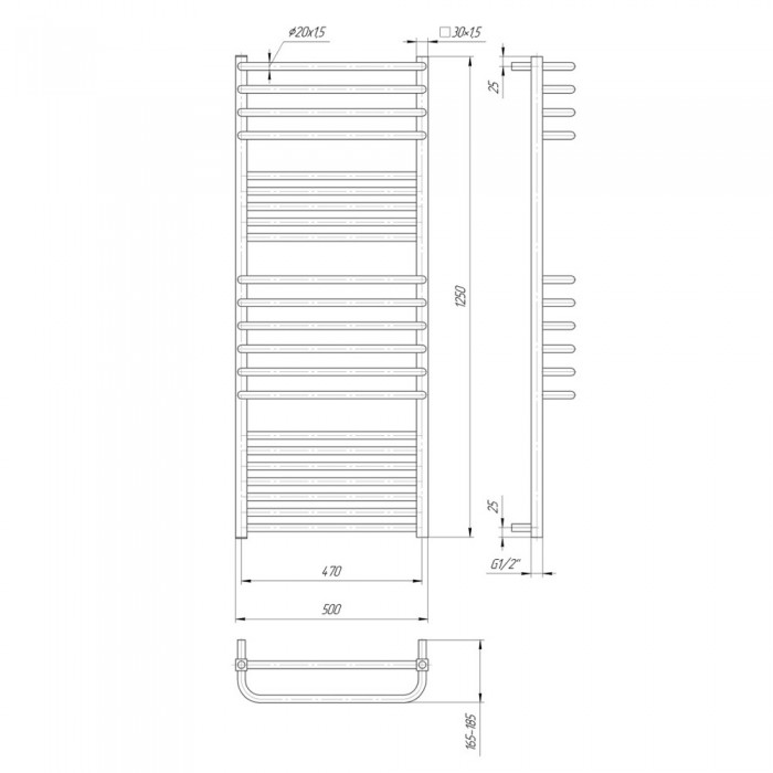 Водяной полотенцесушитель Гера-Люкс 1250х470 с межосевым расстоянием для подключения 470 мм, диаметр подключения G 1/2'' состоит из 22 ребер. Полотенцесушитель Гера-Люкс производственного предприятия Mario изготовлен из нержавеющей стали АІSI 304 может быть оборудован электрическим теном.
