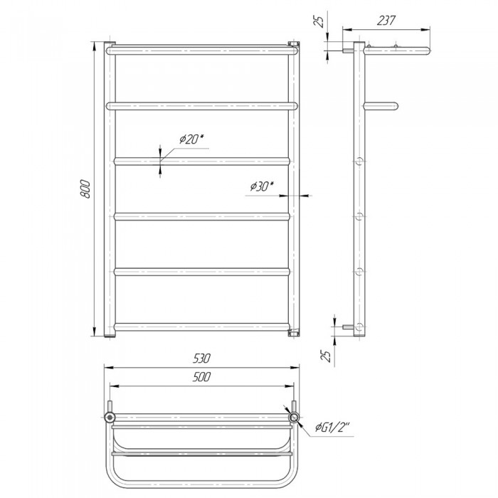 Водяной полотенцесушитель Mario Hotel 800x530/500 мм нержавеющая сталь