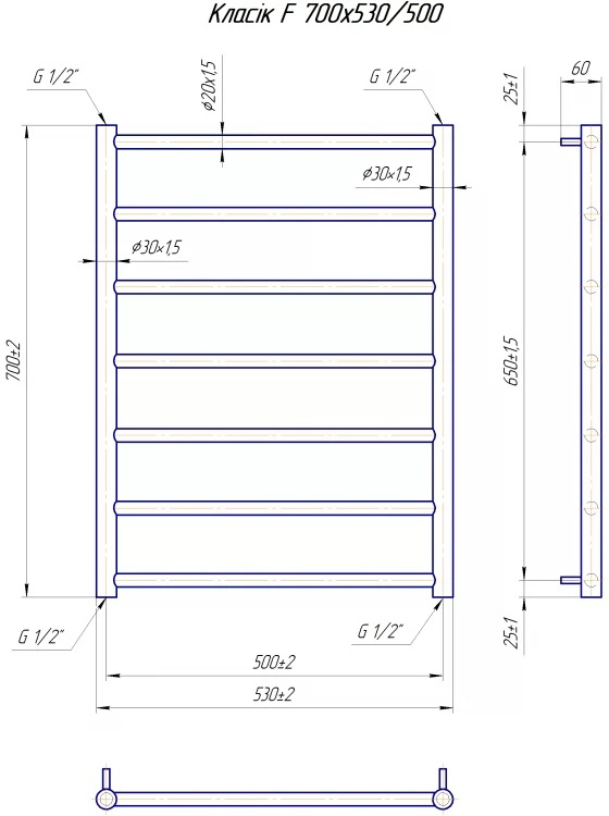 Водяной полотенцесушитель Mario Классик F 700x530/500 хром 4820111357031