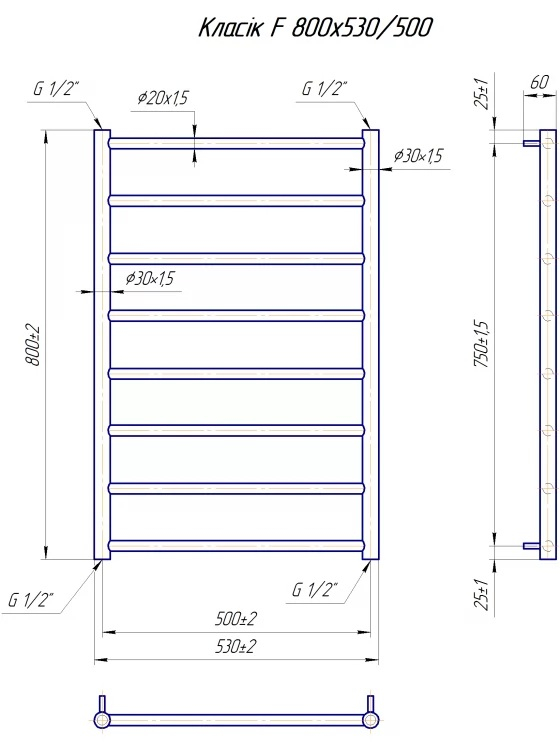Водяной полотенцесушитель Mario Классик F 800x530/500 хром