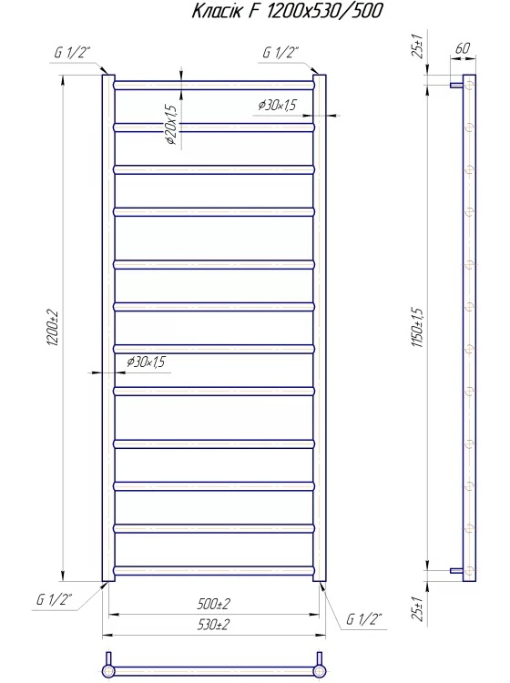 Водяной полотенцесушитель Mario Классик F 1200x530/500 хром