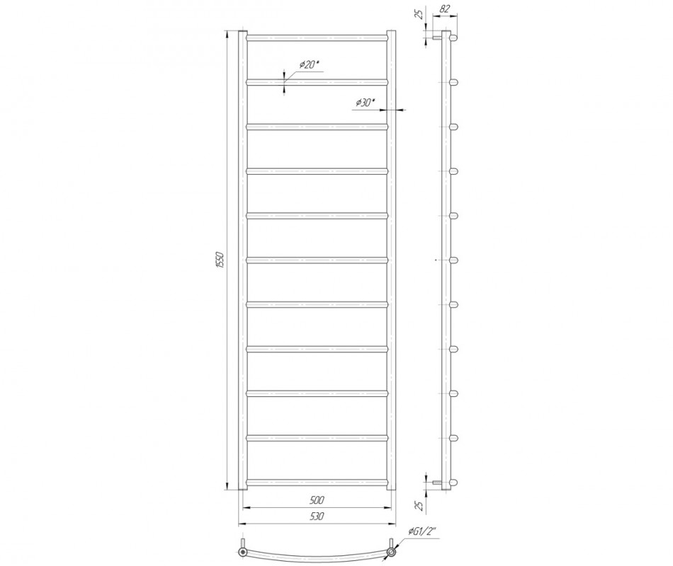 Водяной полотенцесушитель Mario Классик HP 1550х530/500 мм хром