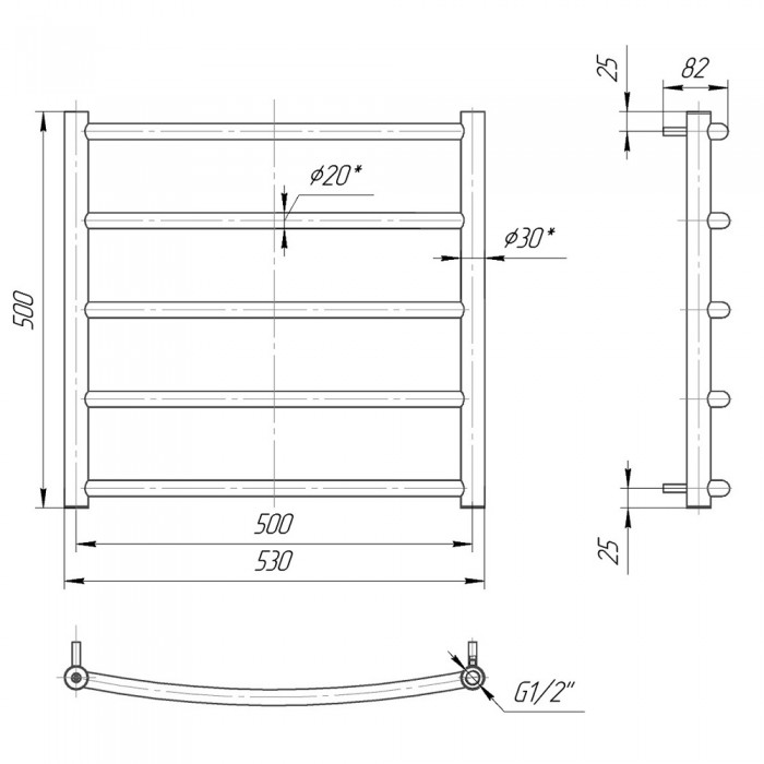 Водяной полотенцесушитель Mario Классик 500x530/500 мм нержавеющая сталь 4820111350278