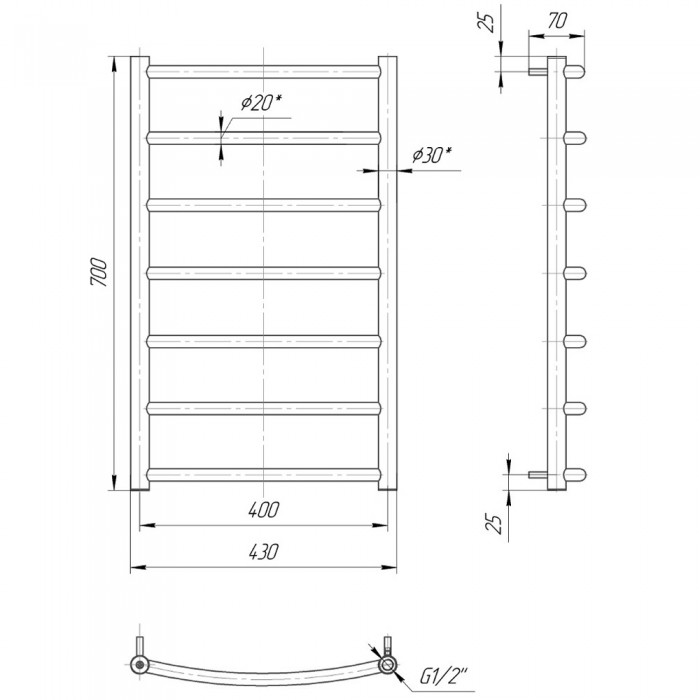 Водяной полотенцесушитель Mario Классик 700x430/400 мм нержавеющая сталь 4820111350308