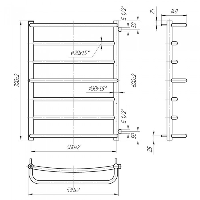 Полотенцесушитель Люкс Б/П выполнен в форме лесенки и предназначен для бокового подключения. Он состоит из 7 ребер, три из которых выступающие. Такая конструкция позволит разместить для сушки банный халат или другие габаритные вещи. Такой полотенцесушитель создаст комфортную температуру в помещении, избавит ванную комнату от грибка и запотевших зеркал.