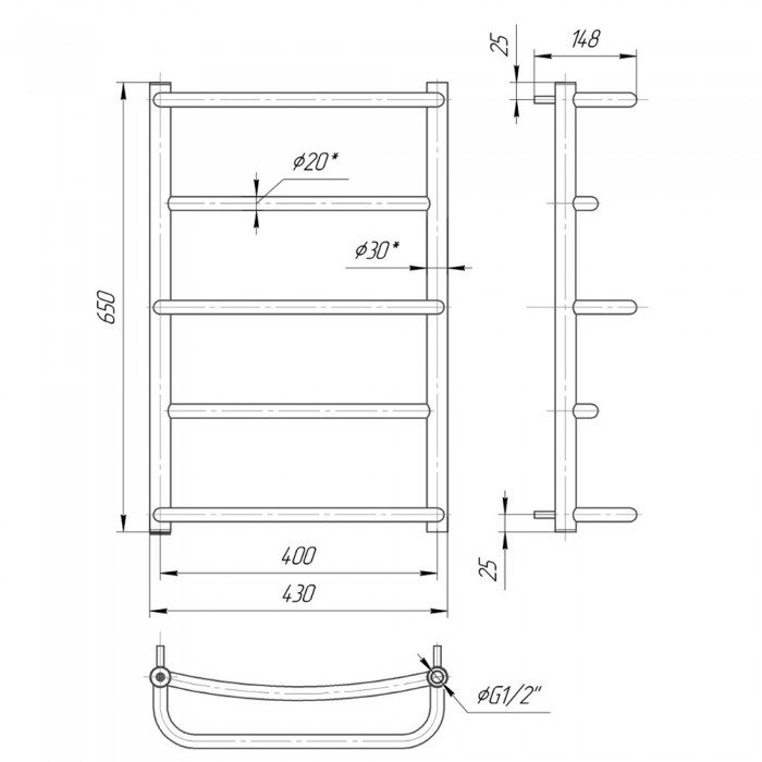 Водяной полотенцесушитель Люкс HP 650х400 с межосевым растоянием для подключения 400мм, диметр подключения G 1/2'' состоит из 5 ребер. Полотенцесушитель Люкс HP производсветнного предприятия Mario изготовлен из нержавеющей стали АІSI 304 может быть оборудован электрическим теном.