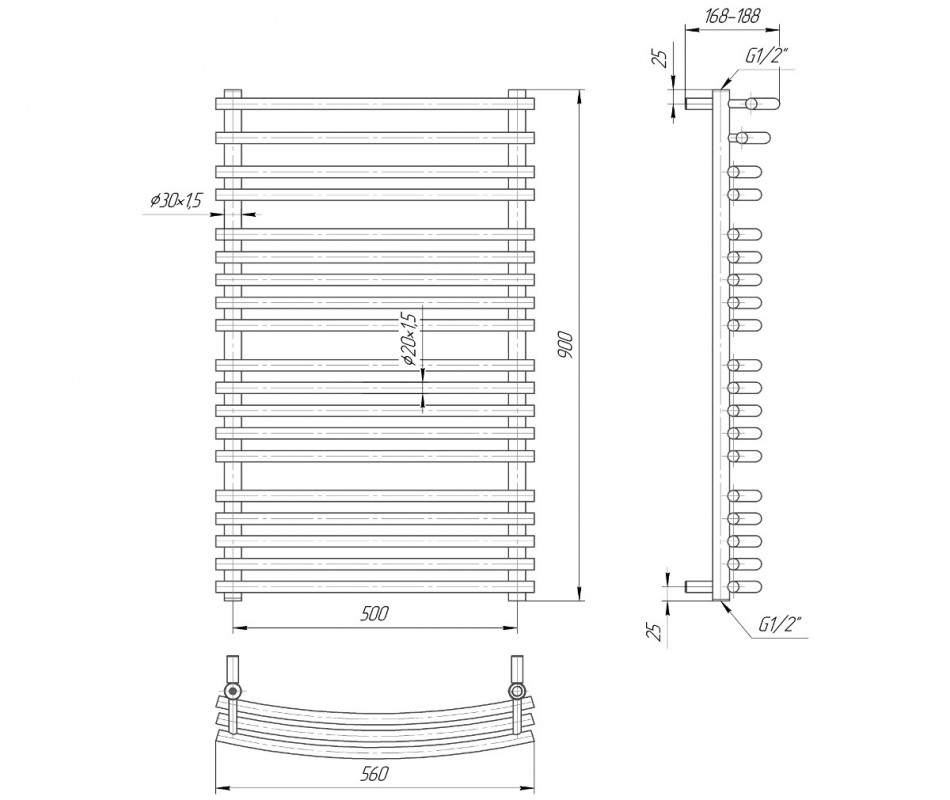 Водяной полотенцесушитель Премиум Марио 900x560 с межосевым растоянием для подключения 500мм, диметр подключения G 1/2'' состоит из 19 ребер. Полотенцесушитель Премиум Марио производсветнного предприятия Mario изготовлен из нержавеющей стали АІSI 304 может быть оборудован электрическим теном.