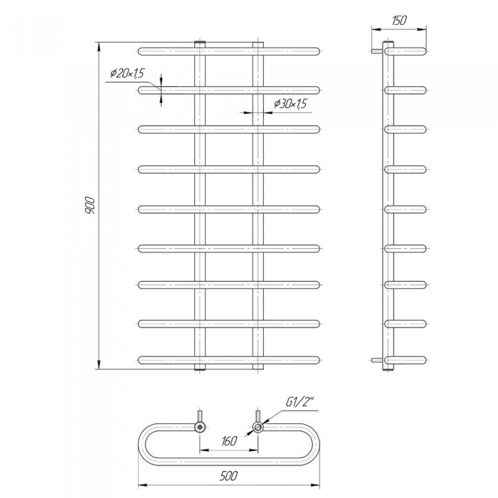 Водяной полотенцесушитель Mario Сахара 900x500/160 мм нержавеющая сталь 4820111350483