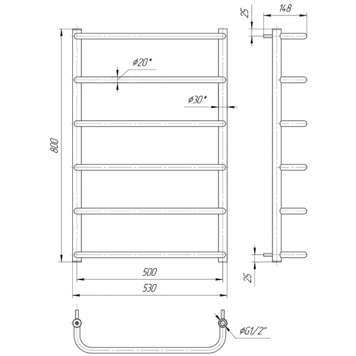 Водяной полотенцесушитель Mario Стандарт HP 800x530/500 мм нержавеющая сталь