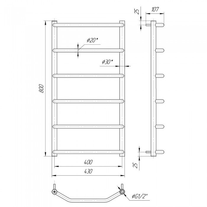 - Тип полотенцесушителя: водяной