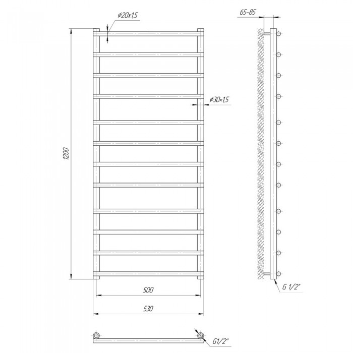 Водяной полотенцесушитель Mario Турин 1200x530/500 мм нержавеющая сталь 4820111354290