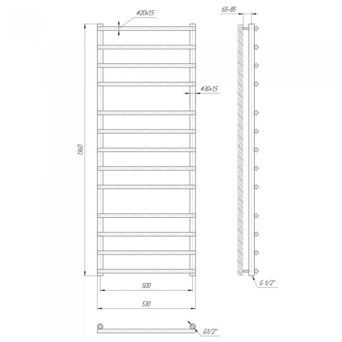 Водяной полотенцесушитель Mario Турин 1360x530/500 мм нержавеющая сталь