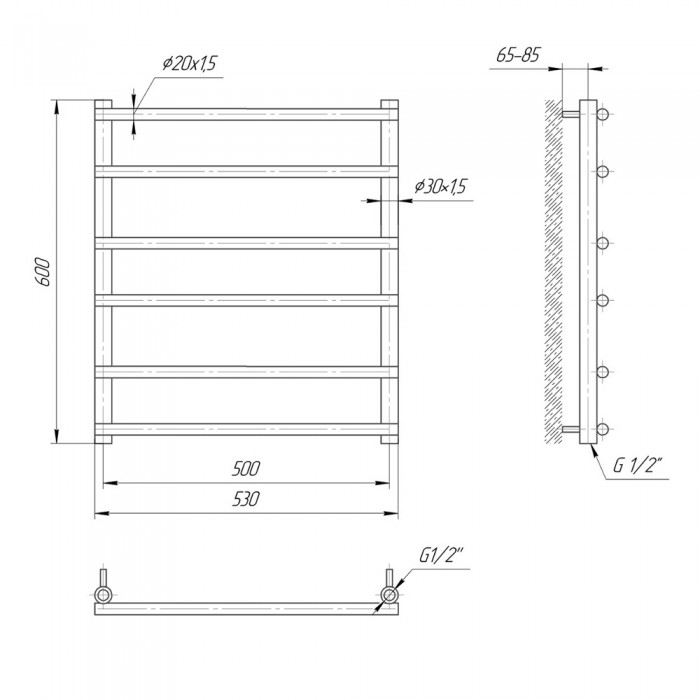 Водяной полотенцесушитель Mario Турин 600x530/500 мм нержавеющая сталь 4820111352975